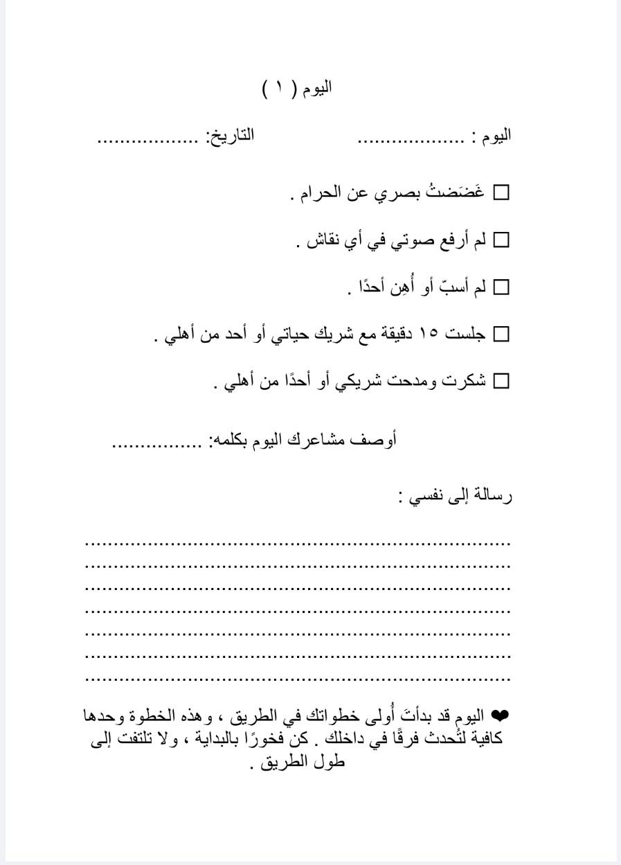فهذه المفكّرة صُمّمت لتكون أداة عملية تساعدك أن تصل إلى نهاية التحدي وأنت شخص مختلف عمّا بدأت به.